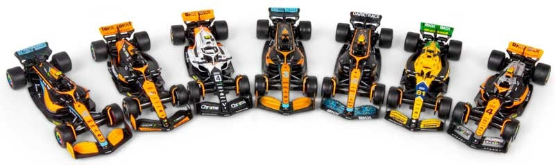 Celebrate McLaren’s F1 legacy with this 1:43 scale McLaren Deluxe Gift Set, a must-have for collectors and racing enthusiasts. This exclusive set features seven precision-crafted models, including the MCL36 Team McLaren No. 4 (2022), two No. 3 Daniel Ricciardo models, MCL60 No. 4 (2023) Lando Norris, No. 81 Oscar Piastri, and the MCL38 No. 4 & No. 81 from the 2024 Monaco Grand Prix. Each car is meticulously detailed to capture the essence of McLaren’s racing heritage. The set is elegantly presented with a premium display stand, making it a perfect centrepiece for any collection.