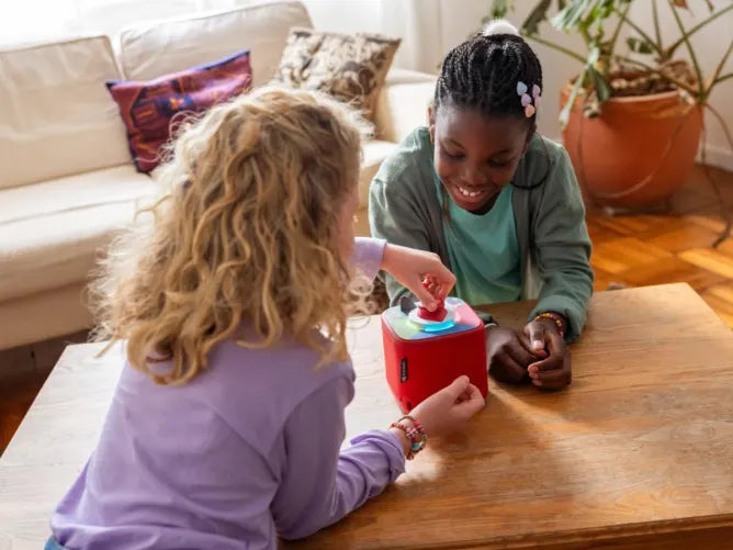 Zoe and her friend Sam are on a mission to rescue their neighbor's missing puppy, Poochie. In this interactive Tonieplay Game for ages 7+, kids explore the Big City, choose the route, uncover clues, and make real-time decisions to steer the adventure. Get ready for a story with 12 twists and turns and 4 alternate endings for hours of imaginative play time! Tonieplay unlocks new ways to play, only on Toniebox 2. Just pop the Tonieplay Disc and Controller on the Toniebox 2, and crack the case!
