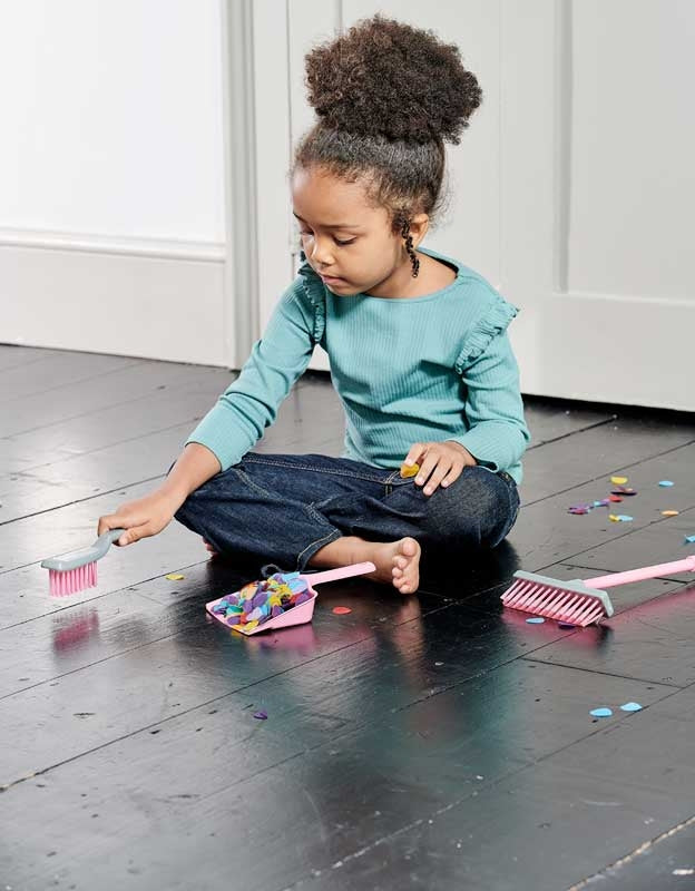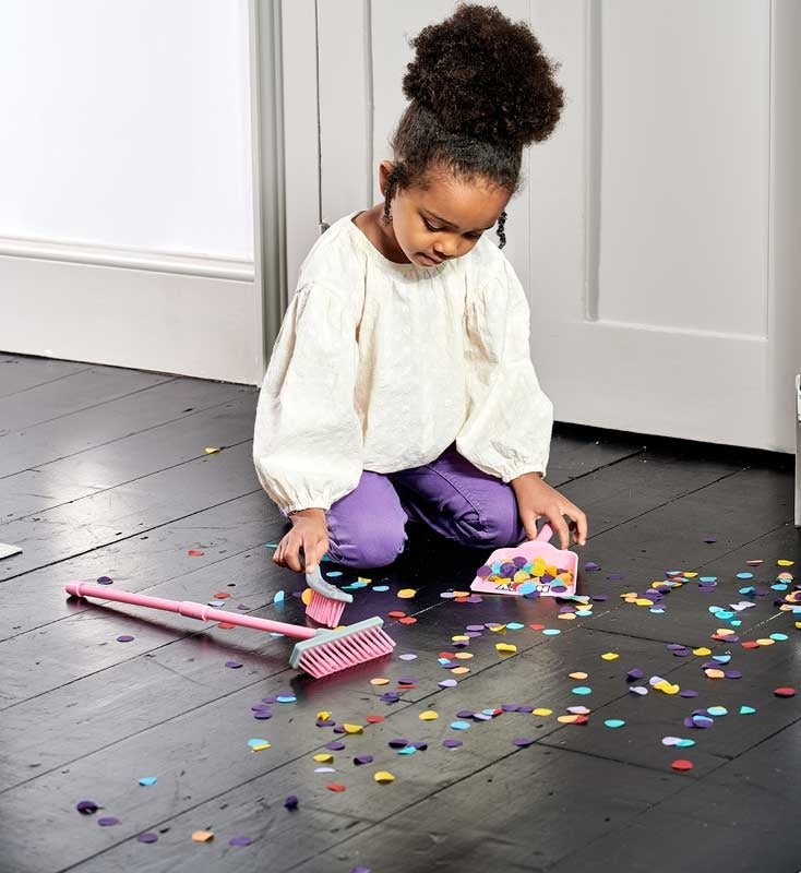 The broom is perfectly sized for small hands and is ideal for sweeping up playtime messes, while the handheld brush and dustpan combo is perfect for cleaning up those smaller, hard-to-reach play areas. There are so many ways to play!