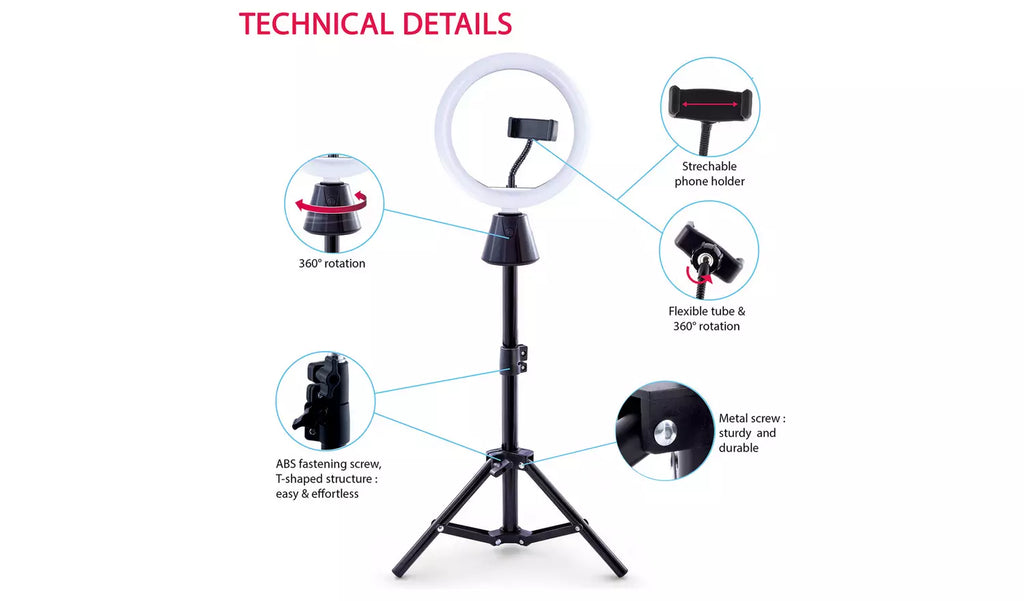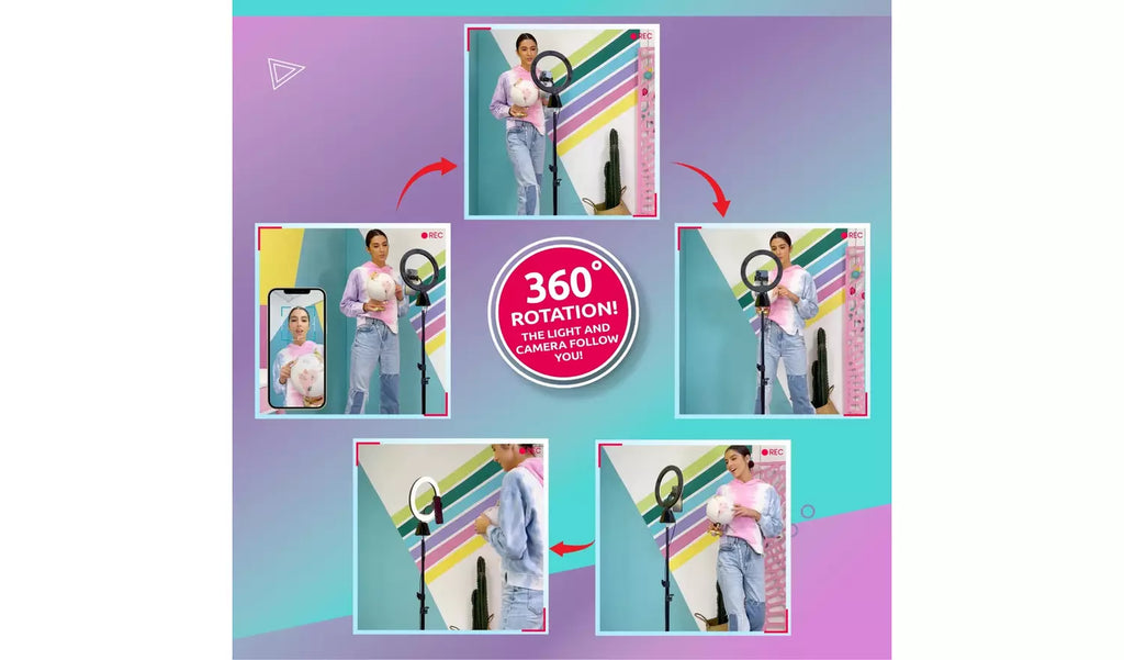 ADJUSTABLE - Use the ring light with or without the adjustable tripod! The 360 deivce will still track your movements.