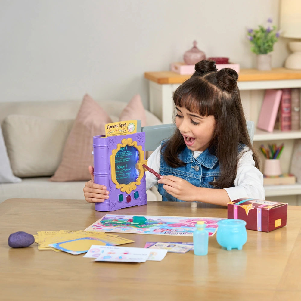 With over 30 interactive elements, each turn of the page leads to discovery. Use spell sheets, cast magic with your wand, and uncover the books hidden secrets. As your skills grow, new spells like the Nightlight and Fortune Teller await!
