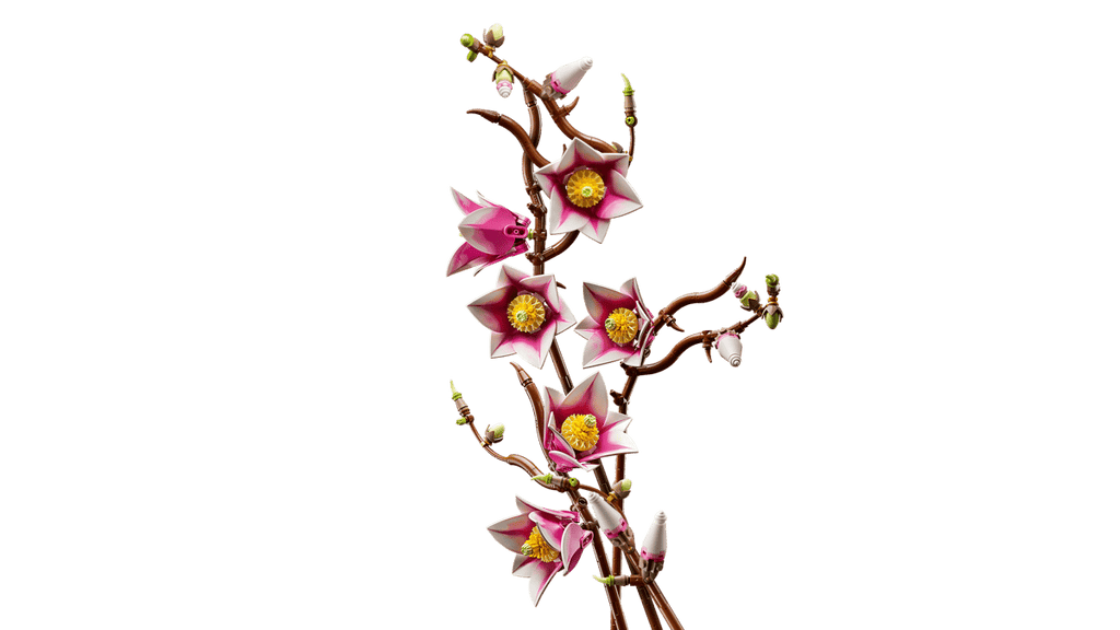 - LEGO® MAGNOLIAS – The building kit includes 5 magnolia branches, with 2 of the branches showing the full development of the flower, from the tiny bud to the open petals