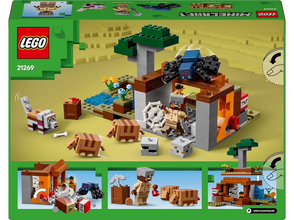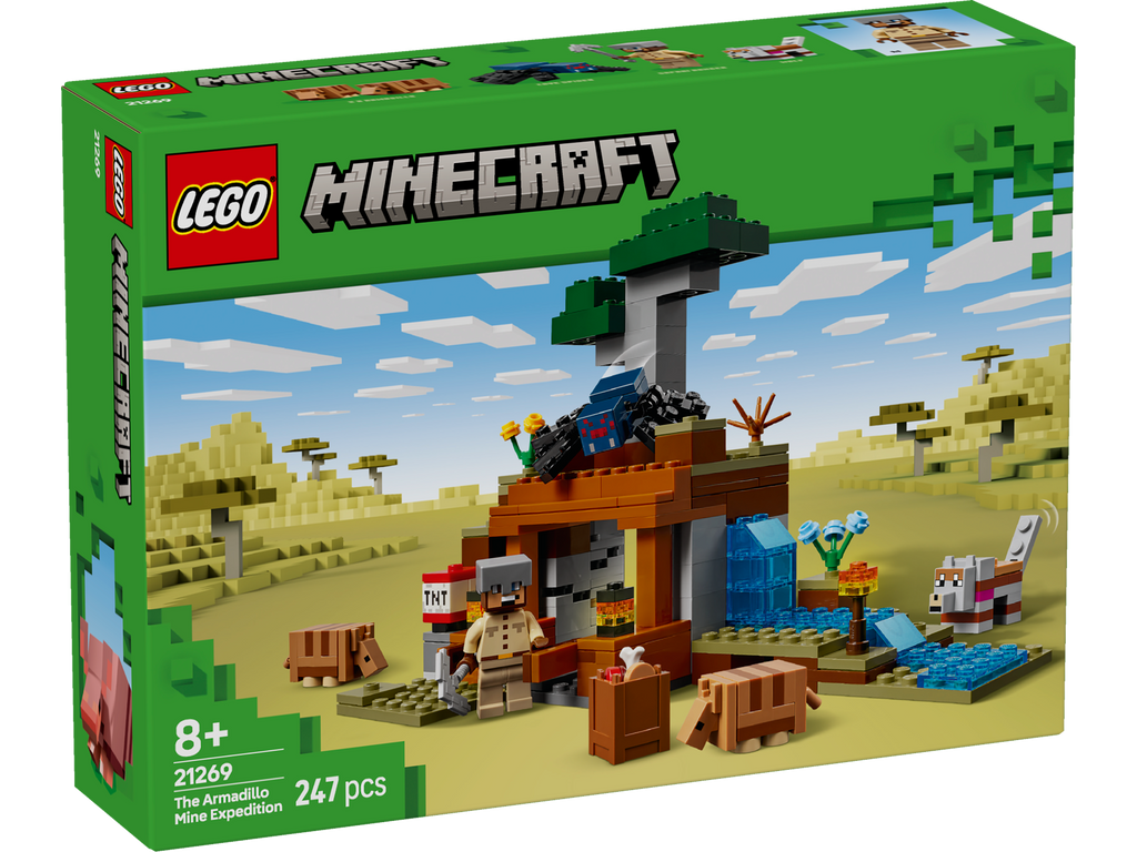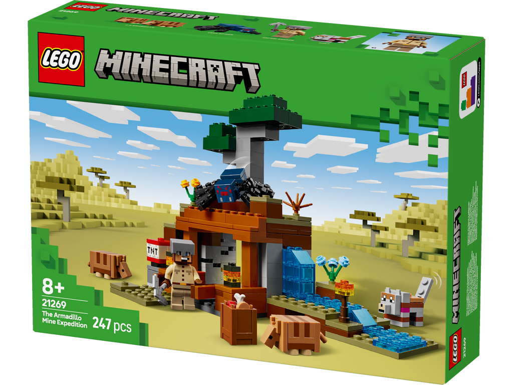 The Armadillo Mine Expedition (21269) toy lets Minecraft® players get hands-on with the popular video game. With cool characters and fun features, this LEGO® Minecraft toy is a thrilling gaming set packed with imaginative play possibilities for kids aged 8 and over. Set in the game’s savanna biome, the model features a mine with a lever-controlled TNT function that blasts away a piece of the terrain to reveal precious ore. There is a cave spider toy and a wolf, plus 2 armadillos, which provide the scutes used to craft wolf armour. At the side of the mine there is a small river and a lava fall. The set easily rearranges to inspire new adventures. For extra digital fun, the LEGO Builder app lets kids zoom in and rotate models in 3D using their device.