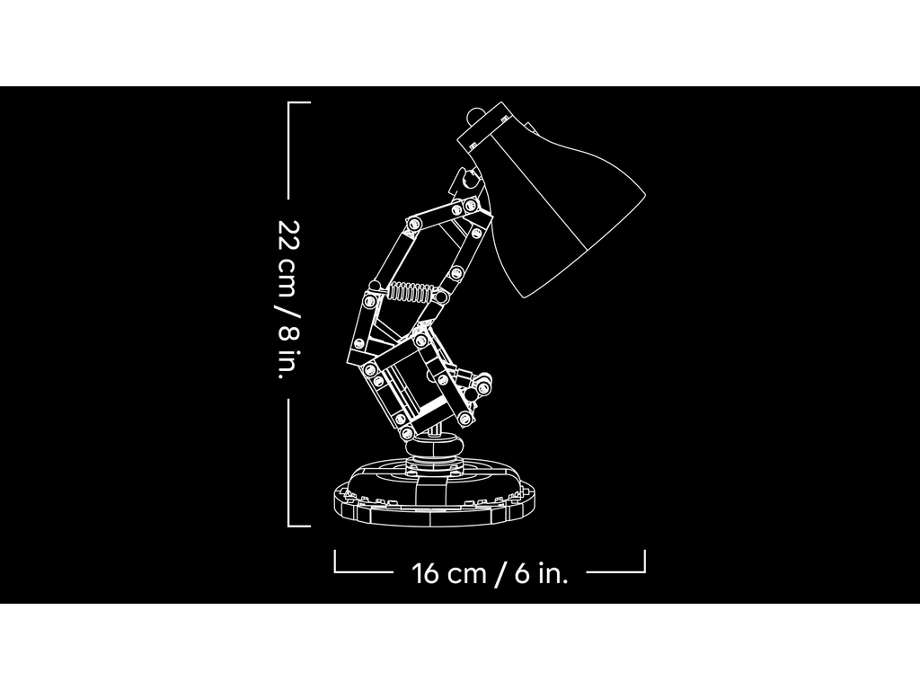 • Home office decoration – The buildable Disney Pixar Luxo Jr. model in this 613-piece LEGO® Ideas ǀ Disney Pixar set measures over 29 cm (11 in.) high, 14 cm (5.5 in.) wide and 11 cm (4 in.) deep