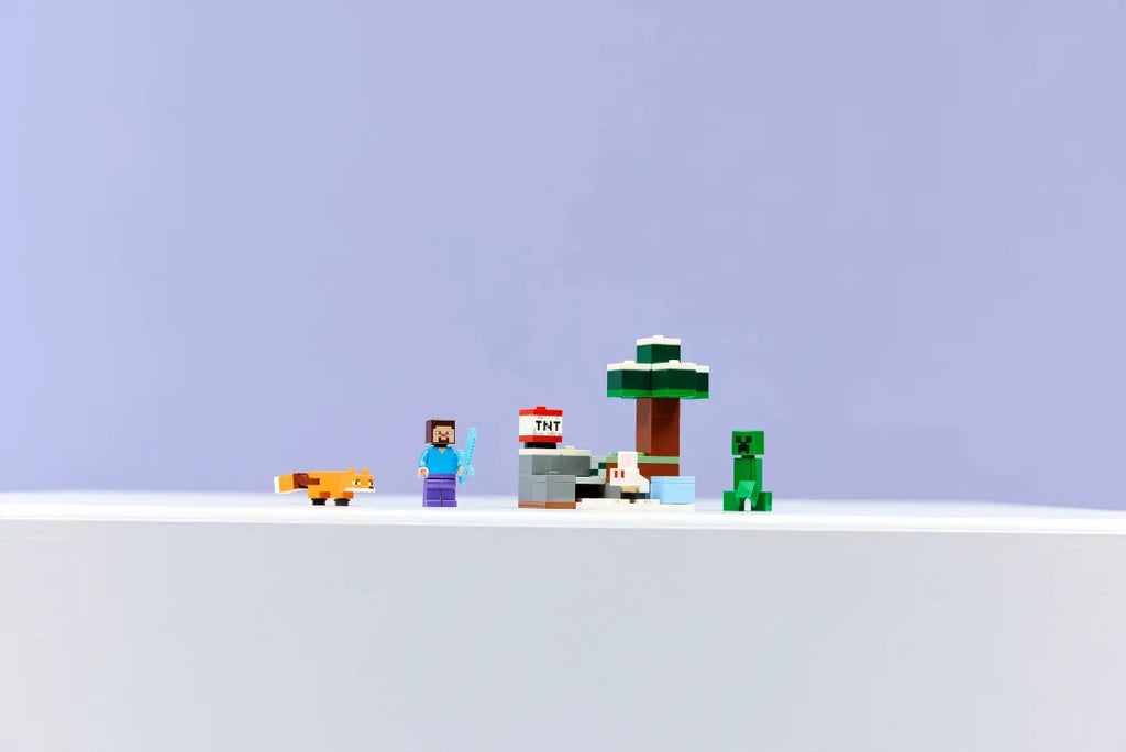 - 4 LEGO® MINECRAFT® CHARACTERS – Build adventures set in the taiga biome with a Steve minifigure, plus a Creeper™ and 2 Minecraft animal figures, a fox and a baby bunny