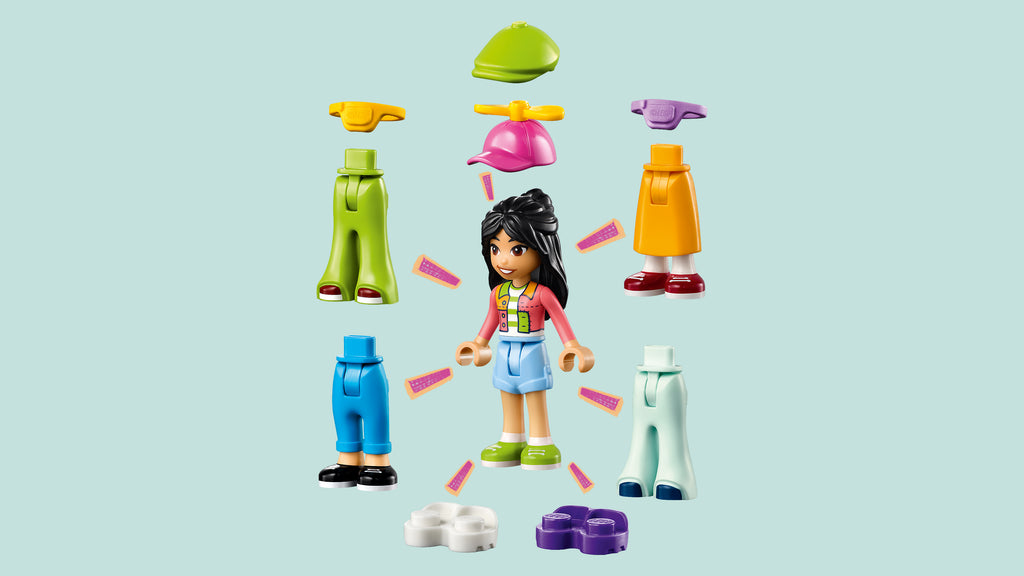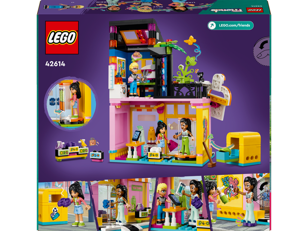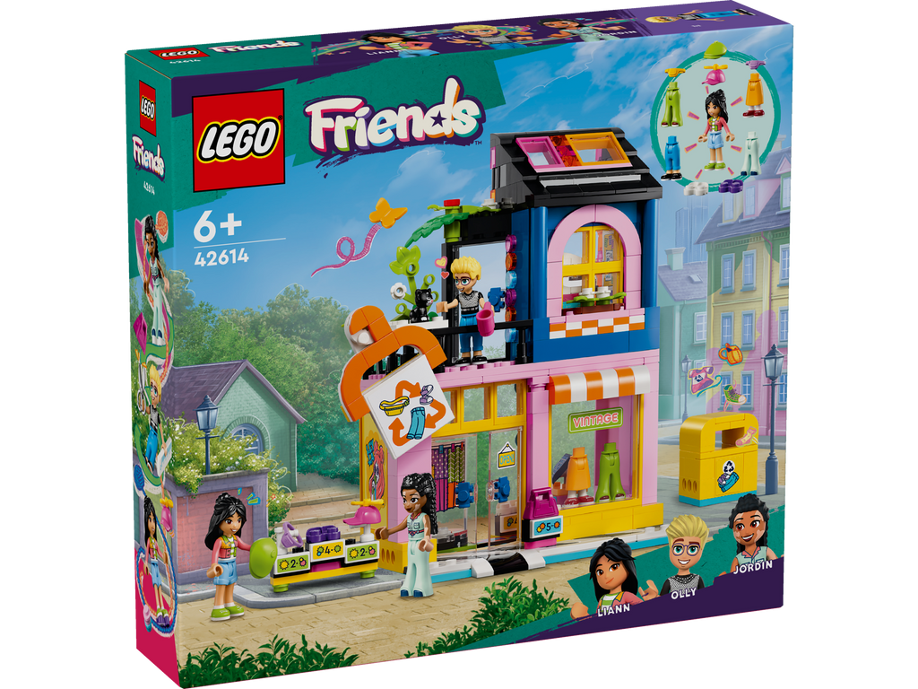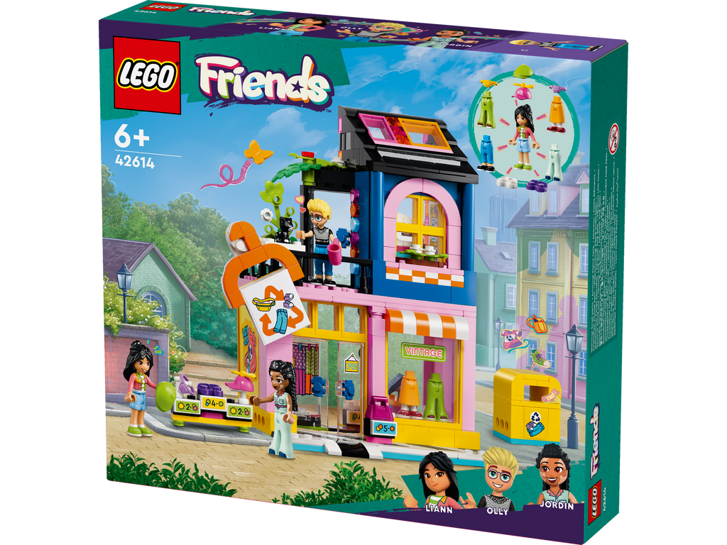 Inspire young builders to think about the planet while having fun with fashion with this social-emotional toy. The LEGO® Friends Vintage Fashion Store (42614) shopping toy for kids, girls and boys aged 6+ includes 3 LEGO Friends characters, a cat figure and accessories. This kids’ toy lets creative girls and boys tell the story of Olly, Liann and Jordin, who love making new outfits from old clothes. Kids can help the characters wash and recycle donated clothes in the workshop. There’s a changing room where the friends can try on outfits, plus lots of clothing which the mini-dolls can wear, including hats, trousers, a pair of shoes and bumbags. The accessories also include detergent, measuring tape, spray paint and a cash register. Discover more building sets for kids in the LEGO Friends range, where there is lots of opportunity to develop social and emotional skills through role play with toys.