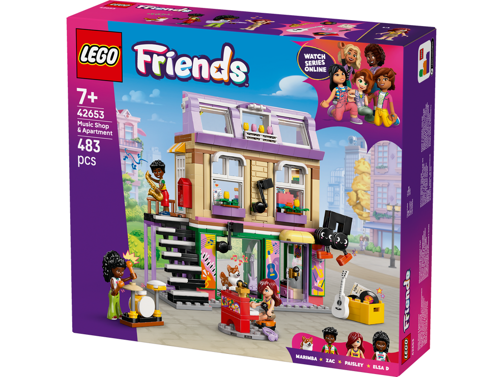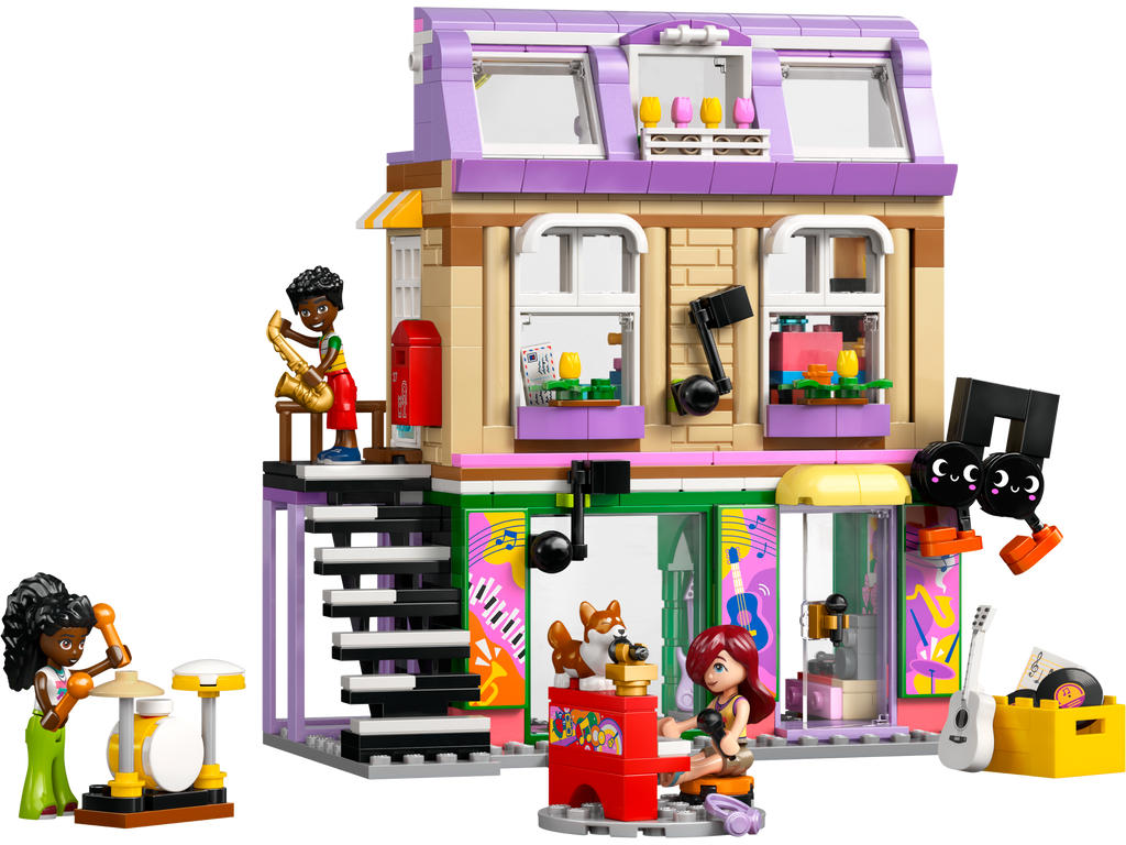 • 3 LEGO® Friends characters and corgi figure – This set is packed with personality and comes with Paisley, Zac and Elsa D minidolls, a corgi figure, musical note mascot, piano-key staircase and more