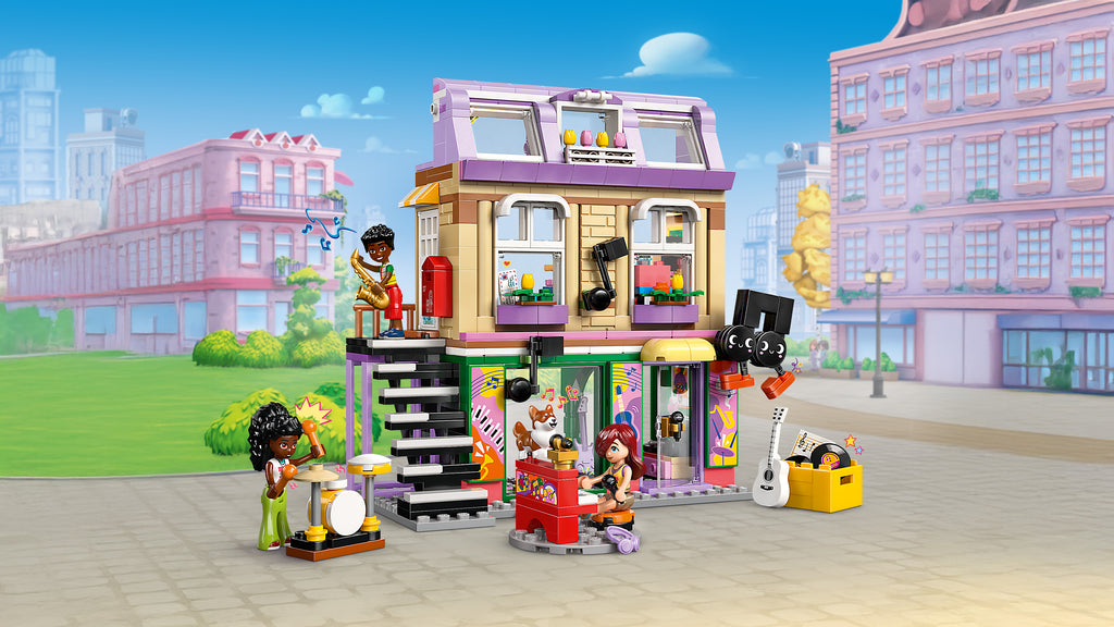 • A building set gift for music-lovers – This LEGO® Friends Music Shop & Apartment set includes lots of music-inspired accessories, including a toy drum kit, piano, guitar, saxophone and more