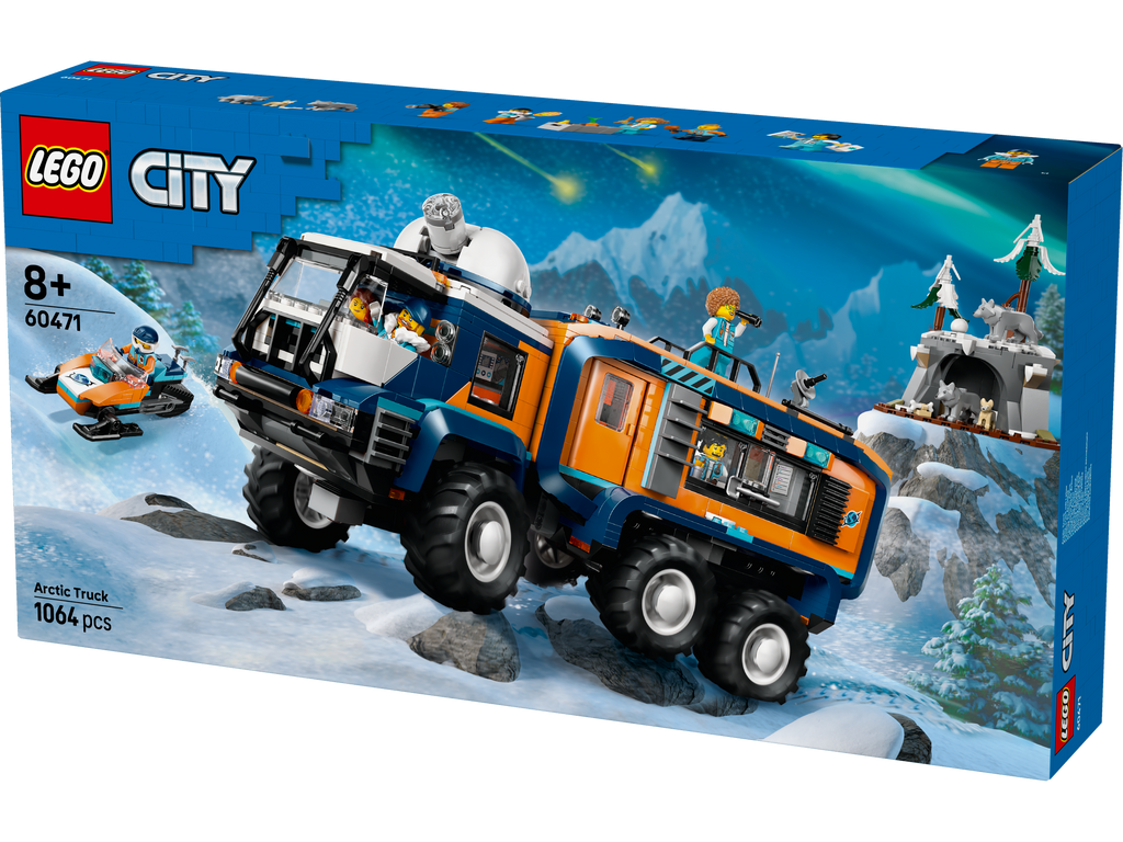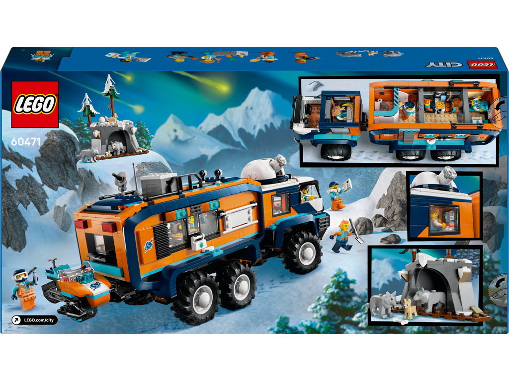 • What’s in the box? – Includes a toy exploration truck, snowmobile and Arctic cave scene, plus driver, photographer, scientist, medic and mechanic minifigures and 3 Arctic wolf animal figures