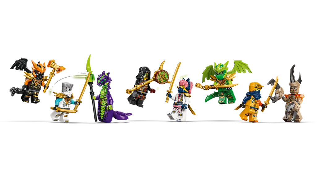 - 8 NINJAGO® MINIFIGURES – Kids’ adventure toy comes with Zane, Sora, Arin, dragon form Lloyd, dragon form Cole, Acid Monster, Earth Monster and Loyalist Leader for action-packed imaginative play