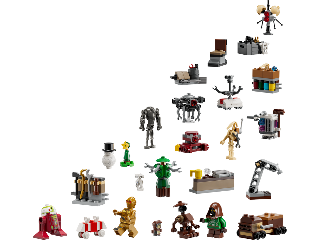 Be like Babu Frik and create your own droidsmith workshop with the LEGO® Star Wars™ Advent Calendar 2025! Behind the calendar doors you’ll find buildable droids, extra droid parts and workshop equipment. And look out for iconic Star Wars characters in unique Christmas outfits to play out festive droid-building stories every day in the run-up to Christmas!