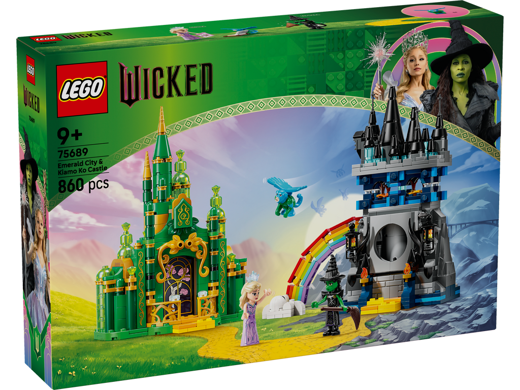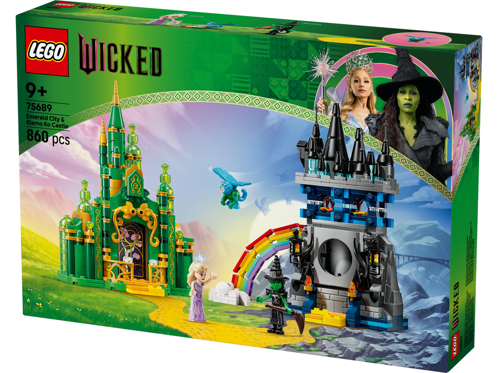 Give kids aged 9 plus “unlimited” Wicked adventures with the gift of the Emerald City & Kiamo Ko Castle (75689) building toy. Girls, boys and fans of the movies can recreate the emotional ending of Wicked: For Good as they role-play Glinda in the Emerald City and Elphaba in Kiamo Ko Castle. This gift idea is unique. Along with its Glinda and Elphaba minidolls, it’s the first LEGO® Wicked toy to feature a flying monkey figure. Kids explore these 2 intricate building toys with the characters, discovering all the details hidden within. They can hang out in the Emerald City bedroom or peruse the hidden map of Oz. In the Kiamo Ko Castle playset they can read the Grimmerie or help Elphaba disappear into the secret compartment to follow her destiny beyond the LEGO rainbow! LEGO Wicked sets provides hours of open-ended play as fans recreate scenes from the movies or invent their own stories. The build is as much fun as the play, resulting in 2 supercool display pieces. Set contains 860 pieces.