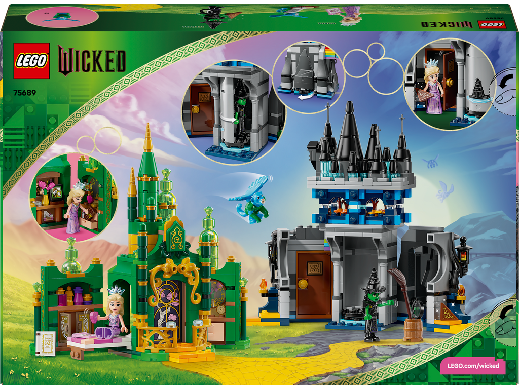 • LEGO® Wicked adventure gift – Emerald City & Kiamo Ko Castle playset includes 2 building toys with LEGO Wicked Elphaba and Glinda minidolls, a flying monkey figure and a buildable rainbow• Building set for kids who love Wicked toys – Includes 2 beautiful display buildings, a LEGO® castle toy and an Emerald City model, each brimming with play starters from the movie and secret features• Relive epic scenes – Hang with Glinda in the Emerald City bedroom and scour the hidden map, spin the turntable in the Kiamo Ko Castle playset and help Elphaba vanish over the LEGO® rainbow• Fantasy decor – Bring Wicked magic to kids’ bedrooms with these intricate and colourful building toys that are as rewarding to explore as they are to display• Looking for a gift idea for a Wicked fan? – These building toys make a fun gift for 9-year-old-plus girls and boys to build with their best friends, and kids who love Wicked merch• A fun way to build – The LEGO® Builder app guides kids on an intuitive building adventure, where they can save sets, track progress and zoom in and rotate models in 3D while they build• Bring home the magic – LEGO® Wicked movie gifts let fans of the films enjoy ”unlimited” Wicked adventures with sets packed with authentic details and familiar features from the films• Dimensions – This 860-piece set includes a LEGO® Kiamo Ko Castle that measures over 18 cm (7 in.) high, 18 cm (7 in.) wide and 10 cm (3.5 in.) deep