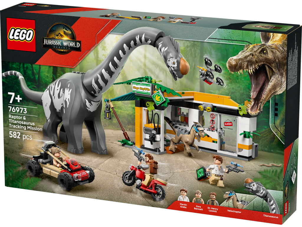 • Dinosaur toys – Features moulded LEGO® Titanosaurus and Velociraptor figures, plus 3 minifigures from the Jurassic World Rebirth film to spark role play and endless stories