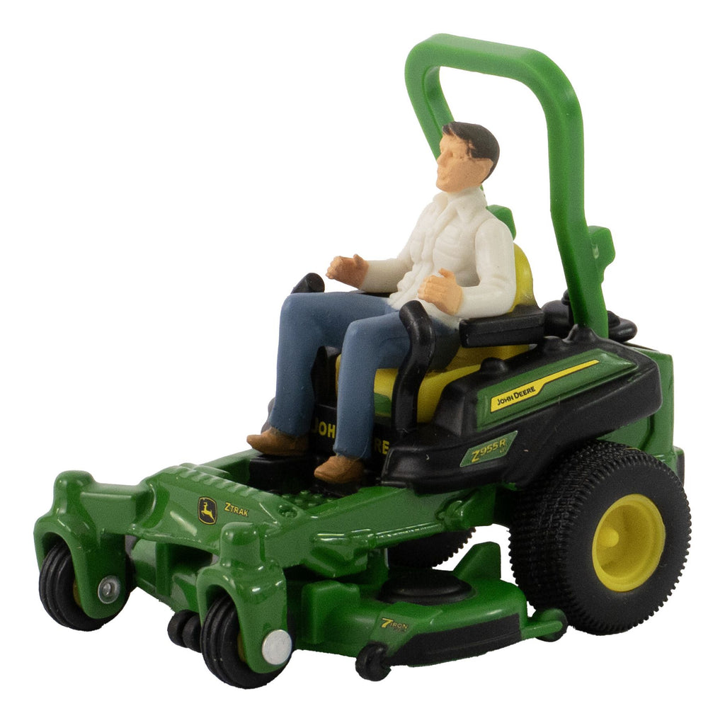 The grass will always be greener with this 1:32 scale John Deere Garden Set! This garden playset includes everything needed for a lush landscape. Get to work by placing their tools in the included toolbox. This playset includes 6 different tools for kids to use as they beautify their miniature lawn or garden: a shovel, leaf rake, garden rake, weed trimmer, leaf blower, and hedge trimmer. Two friendly landscaper toy figures also comes in this set in a standing working position, so kids can let them "use" the tools by sliding them into their hands. The sitting gardening figure fits inside the latest John Deere Z955R mower for unique imaginative play. Made of die cast metal and durable precision-moulded plastic. Suitable for indoor and outdoor play, for kids and collectors aged 3+