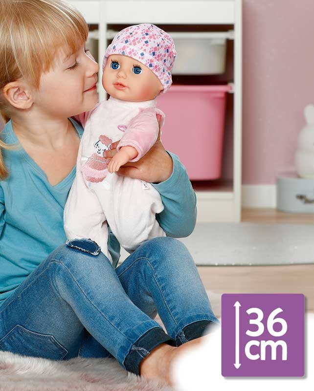 Baby Annabell Anna is the perfect introduction into nurturing doll play for little ones aged 1+. As the little sister of the original Baby Annabell 43cm doll, she encourages gentle role play and supports emotional development.nnHer soft body means Anna is ideal for lots of cuddles and soothing, and at 36cm in size, she's the perfect height and weight for toddlers to carry around and care for. She comes with a miniature bottle which is great for pretend feeding and her eyes close when you lie her down, supporting naptimes and role play. nnDressed in a cosy hat and romper with Velcro fastening, little ones can easily change Anna’s outfit throughout the day. nnSuitable for children aged 1+.n36cm, with sleeping eyes and cuddly body. nComes with romper, hat and bottle. Comes in 100% plastic free packagingnGently encourages children from the age of 1 to engage in nurturing role play and provides initial stimuli for developing a sense of empathy and responsibility.